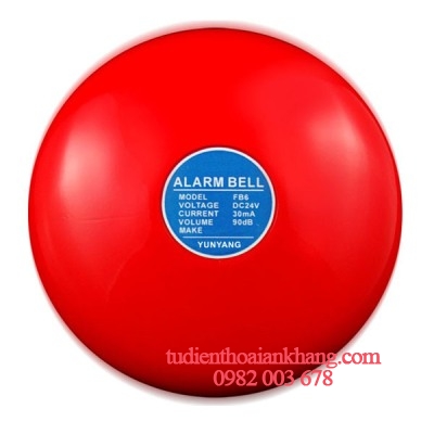 " />Chuông báo cháy Yun-yang YFB-B6-24V– Mô tơ chạy với mức tiêu thụ dòng thấp, chuông báo cháy được điều khiển bởi các thiết bị cảm biến hoặc con người và âm thanh báo giống như khi xảy ra cháy. Được thiết kế cấu trúc đặc biệt rất bền vững, chuông có thể kêu 40 giờ liên tục mà không gây giảm hiệu suất và cấu trúc thiết kế.