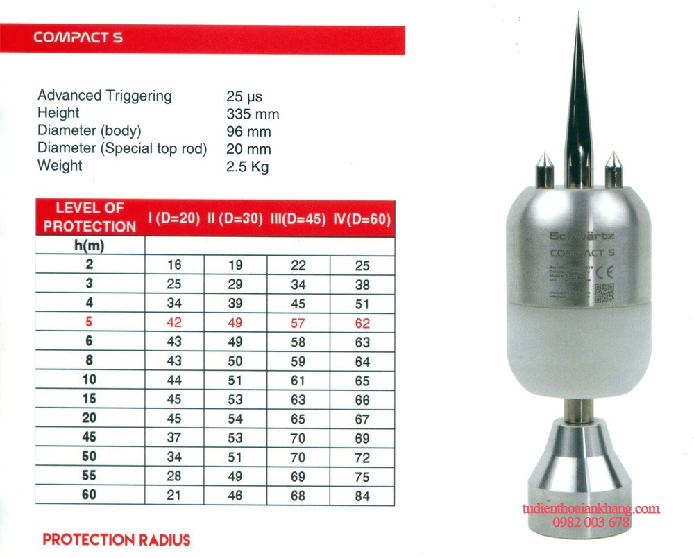 - Bán kính bảo vệ cấp 3, R=62m.
